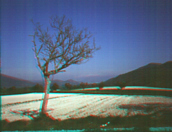 Queste foto sono realizzate con il sistema degli anaglifi, che consiste nel sovrapporre sul medesimo supporto le due immagini della visione stereoscopica (la stereocoppia), filtrando per convenzione l'immagine sinistra con un filtro rosso e l'immagine destra con un filtro verde oppure blu. Nel caso di visione su monitor viene preferito il blu, per cui ho adottato anch'io la convenzione SINISTRA=ROSSO e DESTRA=BLU. L'immagine risultante appare sfrangiata se vista ad occhi nudi ma fornisce una ottima visione tridimensionale se si antepongono un filtro rosso davanti all'occhio sinistro ed un filtro blu davanti all'occhio destro.