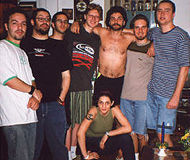 | hique gomez no meio de todo o staff do col (menos o galera) | wwhhaaaaa ah ah ahhah ahaa... ceva! | cara, esse sorrisão do caon é muito absurdo | fontanella, fabrício e cardoso no enecom 2000 | o pior não é o cardoso estar só de cueca na festa de encerramento do enecom, no meio de 1700 estudantes de comunicação de todo o país; o pior é que estava fazendo uns 2 graus negativos e ele não tava nem aí | your pussy is glued to a building on fire... la la la | drégus, discotecário de muitos bailões e ex-cowabunga | clarah e emiliano | diego medina e as meninas da video hits enchem de amor o bailáo do col | mojo mafioso toca o horros na faculdade de letras da ufgrs | |