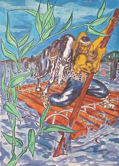 Tittle: "The Gaucho and River "Size: 19 1/2" x 27"Medium: Indian Ink on PaperArtist: Delafuente