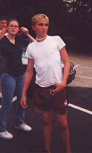 | Michael lookes like he's trapped in some asylum. Well, he's in the hall of our school. That's close. |