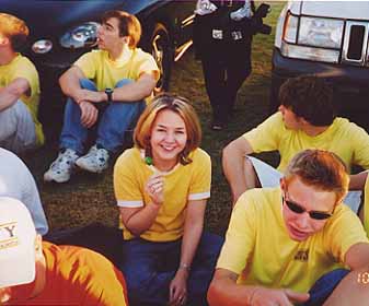 | These pictures are really grainy. Anyway, this is me amidst fellow Juniors at the Homecoming soccer game. Real Juniors wear yellow. All the way, baby. |