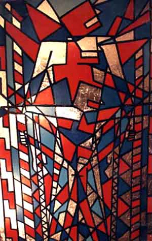 Enamel and aluminum on wood