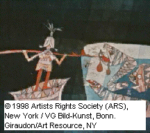 Klee, Paul (1879-1940), peintre et théoricien de l'art suisse. Fils de musiciens, Klee naquit à Münchenbuchsee, près de Berne, le 18 décembre 1879. Ses premières œuvres significatives furent des études de paysages au crayon ainsi que de nombreuses eaux-fortes en noir et blanc marquées par les esthétiques symboliste et expressionniste. En 1911, Klee entra en contact avec les artistes du Cavalier bleu (Der Blaue Reiter : Wassily Kandinsky, Franz Marc, August Macke, etc.) puis exposa avec eux à Berlin. Il rencontra également Robert Delaunay à Paris. En 1914, il voyagea avec Macke en Tunisie et y découvrit les pouvoirs de la couleur : "!C'est le moment le plus heureux de ma vie : la couleur et moi ne faisons plus qu'un. Je suis peintre.!" Aquarelliste doué, il utilisa davantage la peinture à l'huile après la guerre, privilégiant les petits formats et variant les supports, introduisant également la lettre et des signes graphiques. En 1921, il fut appelé à enseigner au Bauhaus. En 1931, il accepta la chaire de technique picturale à l'universté de Düsseldorf, dont il fut destitué par les nazis en 1933. Il s'établit alors à Berne. Affligé d'une maladie des tissus et des muscles, il ralentit sa production qui prit un caractère plus dramatique, alors qu'il en réduisait les moyens à d'épais traits noirs séparant des aplats de couleurs sombres. Klee mourut à Muralto, en Suisse, le 29 juin 1940.