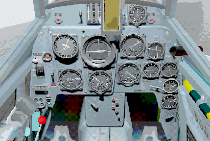 Fire power in the sim seems variable at times. I have hit the sim's P-47D with cannons and tore the whole plane apart, but hit the P-51 in the game with both cannons and MGs and hardly did anything. The cannon load out is small, as is historically true, but the cannons seem a little anemic. In one test, I put all my cannon fire (20mm) into a B17 and even though the results were spectacular, the plane was still flying at the end of the clip. Explosions are not an accurate representation of damage done. As is noted in history, the Luftwaffe found that 18-20 20mm shells could bring down a heavy bomber, even if not really concentrated into one area. The cockpit is absolutely gorgeous, the best of any sim yet. You get the feeling of the enclosed, cramped area that the 109 cockpit really was, and the colors of the cockpit hold up to real life comparison of the LW blue-grey. Ailerons move, and you will probably catch yourself just going to external view to see the eye candy. But it will probably end there, though, as the flight model of the 109 is a pig, and the sim's Spit and P-51 seem to turn likes Zekes, and any altitude. You will spend a lot of time trying to extend away, and the vertical fight is a lost cause. The 109G of history was not the most maneuverable of the marks, but you will feel like you are flying 109K more than a 109G. |