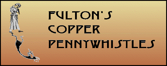 Welcome!If you are interested in making, buying, or playing a copper pennywhistle, you have come to the right place.As a flute and pennywhistle player, I appreciate the joy that comes from having an instrument that both looks and sounds beautiful. I have been making and selling copper pennywhistles since about 1995, and continue to refine my designs to improve both their looks and performance. I make copper pennywhistles in all keys from low G to high G. Since I am making whistles primarily for fun, my prices are quite reasonble. Click on one of the links at left to find out more about my whistles. PS. If you get tired of Geocities' annoying pop-up ads, try my mirror site at http://home.earthlink.net/~gkfb/kim.htm Important Note: As of February 1, 2001, I will not be filling any new pennywhistle orders, so that I can devote more time to recording a CD with my Celtic duo, Dobhran. I hope to return to pennywhistle making when we have completed the CD (Spring 2002). In the mean time, I will be happy to answer any inquiries or questions. Keep on whistling! ---kfb---