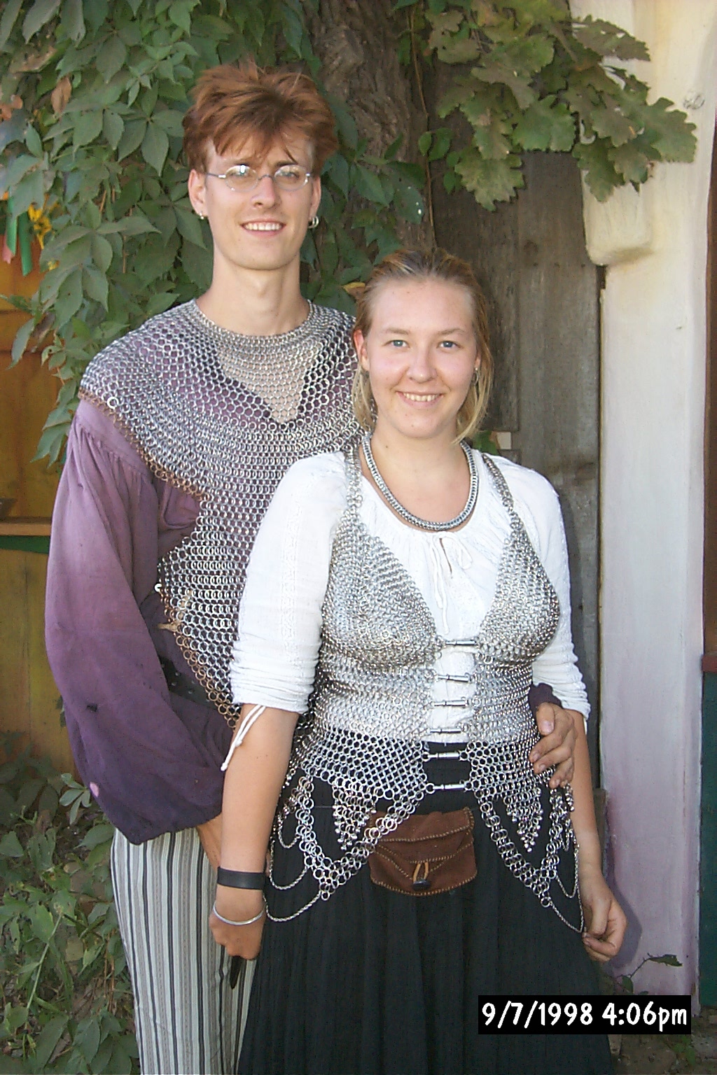 Finally, here is a good picture of Dylan and I. This was taken September 7th, 1998 at the Renaissance Festival. I was working at the Chain Maille booth there, and they dressed him up for the day. That dress that I'm wearing sells for around $800, and his outfit sells for about $1000.