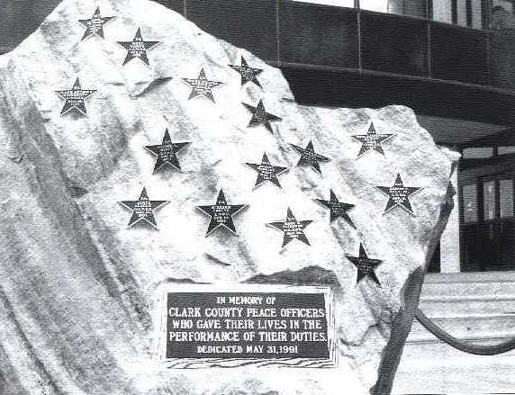 On May 31, 1991, the City of Las Vegas established this memorial to the peace officers who have given their lives in the line of duty. A star represents each local, state and federal officer who made the ultimate sacrifice. There are currently 17 stars on the memorial which is located on the west steps of City Hall, 400 E Stewart Avenue at Las Vegas Boulevard. A formal ceremony is conducted in May of each year to remember and honor these heroes.