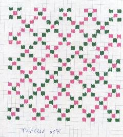 After viewing some of Libbies' handiwork online and the scans of quilt designs from magazines, Arlene decided on a basic nine patch. Lib made these sketches of possible arrangements of nine patch squares, appropriately named Tweedle Dee and Tweedle Dum.