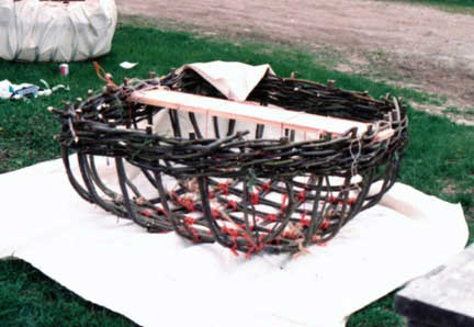 ground. Normally the coracle would be left with a barn door on