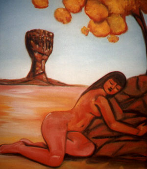 ali, deitados à sombra, abraçados.