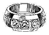 70 baht. Wide gold band set with an emerald encircled by rubies.(r13) |