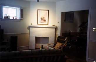 Okay. This was taken from the front door diagonally across the living room. Could this be the future home of the buffalo skull? (Above the fireplace, not in it! But then again since the FP is non-functioning, could that be cool or what?)