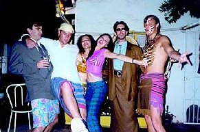 [At this point a Volkswagen Bug, painted in various arcane symbols, roars out of the living room, down the hall past you and the policemen, out into the front yard and into the nearest tree. Eight naked bodies tumble out, moaning.]