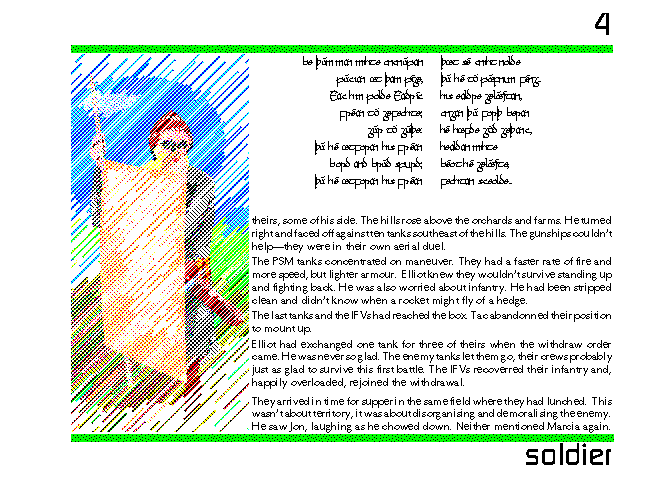 Elliot had exchanged one tank for three of theirs when the withdraw order came. He was never so glad. The enemy tanks let them go, their crews probably just as glad to survive this first battle. The IFVs recoverred their infantry and, happily overloaded, rejoined the withdrawal.