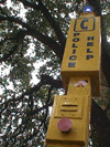 Auxilio: Austin es básicamente un lugar seguro, pero de vez en cuando se pasean tipos medios sicópatas por el campus por las noches, y para esos casos se ocupa esto: una alarma automática, que si te hicieron algo, vas, apretas el botón y llegan los pacos al instante. Supongo que suena una sirena y se activa la baliza, pero ni idea porque nunca he visto una funcionando. Están en todas partes, eso sí.
