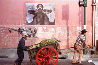 La idea es hacer un seguimiento fotográfico de los afiches, hasta que desaparezcan, y luego hacer una exposición de eso. Es decir que Daniel Hernández quiere hacer un registro del proceso de los afiches, cómo se van paulatinamente destruyendo, cómo se caen o se quiebran. así, más o menos, es como se va enpantanando nuestra conciencia, nuestra memoria anegada en su cotidianidad de humo y gris.