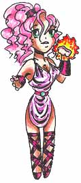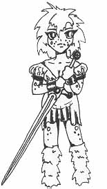 | "Dinah" and "Iskra" are SD characters from one of my "only in my head and sketchbook" comic. There is a very long and deep story behind each of them ^_^. Anyway, Dinah is a dragon, pregnant(the swords sort of conceals the belly) and misfortunatley caught in a human body. Iskra(which means 'spark' in Russian) is a slave girl who accidently gets the powers of a lesser god (oops ^_^). The two other pictures are for Tales from the Vault. It's Pardi(again) and her father Xerxes(who sort of looks a little too oyung for a father :P). The coolest thing about the Pardi pic is the fact that its my first cell! Yey! |