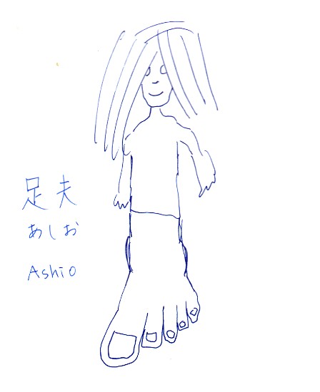 When I test photocopy machines at work, I often create some unique test pages. Here's an example. When I showed Yuuko, she decided to call him Ashio, which means "(The) Foot Man".