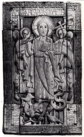 - Anglo-Saxon Ivory Panel, Christ trampling a lion and a dragon, 8th century