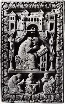 - Ivory Panel, Monks scribing, 10th century