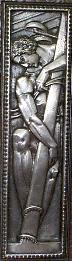 Oscar Bach Repousse Door Panel. Bach designed a number of individually executed panels which were incorporated into elavator doors, entry doors, or mausoleum doors. | ||