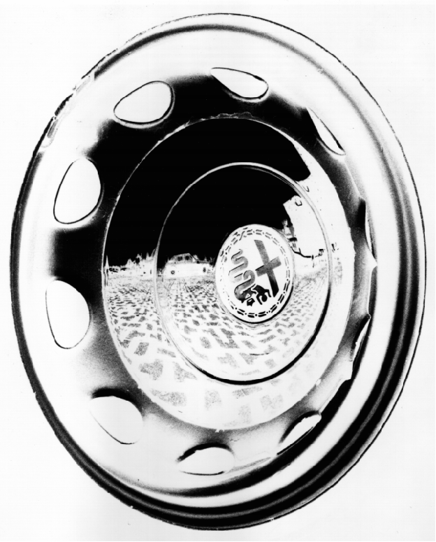 Riflessi nel cerchio di una Giulietta Spider a Monza