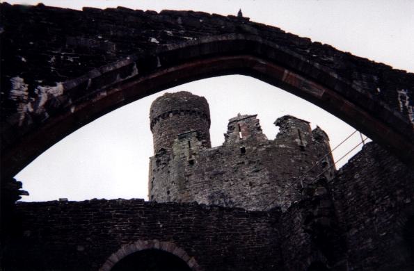 *(1/2) Noah and I Standing Guard - Conwy, Wales - N&B Trip '98