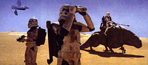 Stormtroopers, a dewback, and a shuttle