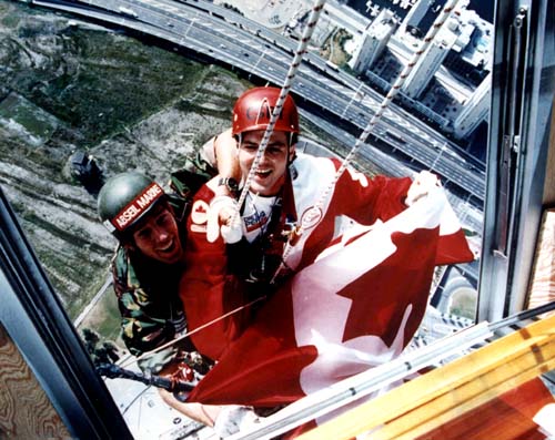 to put the flag up outside the CN Tower, right? . o O (Glad it ain't me!)