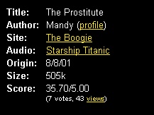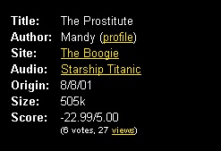 So, for no reason, I picked The Prostitute. I figured that it was pretty funny and most of the voters there are