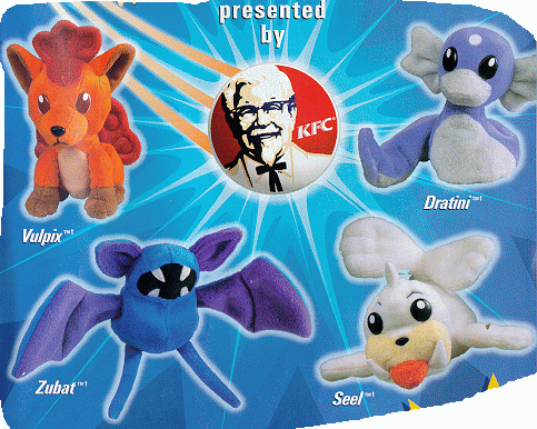 The Official Pokemon Beanie Babies will be sold through a special deal with KFC. Rumor has it there will be six, well I only see 4, the other ones must be too cool to show in the picture, ya, thats it!