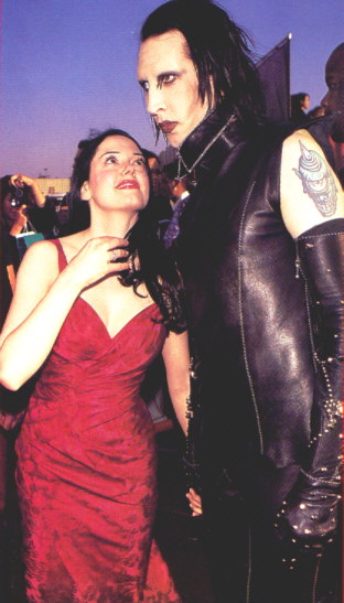 As you know I am thrilled at the site of Rose McGowan. She is a beautiful person and wonderful actress. Others may not agree, but I don't care. What I am interested in is the relationship between Rose and Marilyn Manson (aka Brian Warner). They have been engaged for a while now and are planning to marry. They both believe they were meant for each other and could not see themselves marrying anybody else. What I am going to display here until I have my RoseManson site up and running are some images of the two. Please, enjoy.