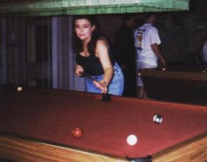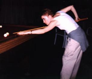 Kathryn K has a mean look on her face (now ball, you are going in that pocket).