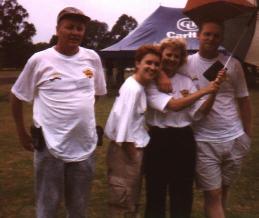 Myself, Kathryn K, Sharyn and Sharyn`s cousin standing out in the rain.