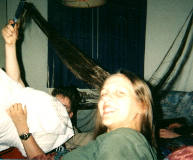 My friend Aleshia in English; she looks high, but she's really not.