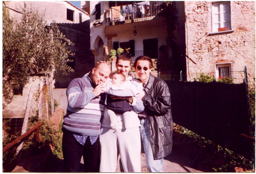 Roberto, Davide (con sua figlia Chiara) ed io, in un paesino vicino Pisa (Calci), dove Davide vive.