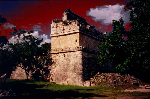 ruins of Chichen Itza. This ruin is one of the many government and religious buildings that are so well preserved at Chichen Itza. There were no living quarters within the main city area -- residents lived outside. Chichen Itza is located about three hours inland from Cancun. There is an interstate-type road that will take you there -- for a $15 toll.  |