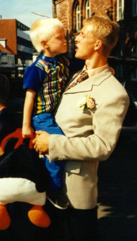 The first one is a picture of my brother with his son Rasmus. Rasmus granulatet his dad with a BIG kiss. To me he said: " Now Mette, my dad and I am married!" :-)