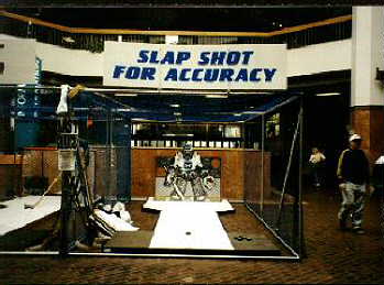 This is the game that I used to run, called "Slapshot for Accuracy." I loved running it, especially with little kids trying to win a prize. I sure do miss it.