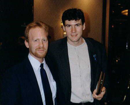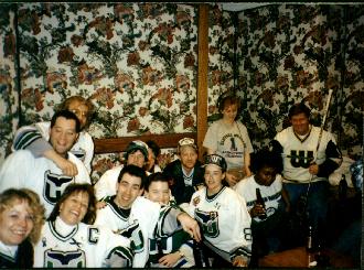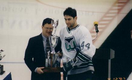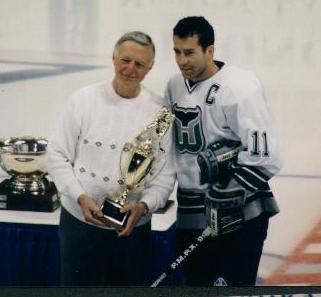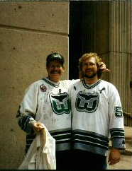 This is my friend Guy (right) and Whalers goalie Sean Burke (left). He was voted Most Valuable Player by the team yet once again