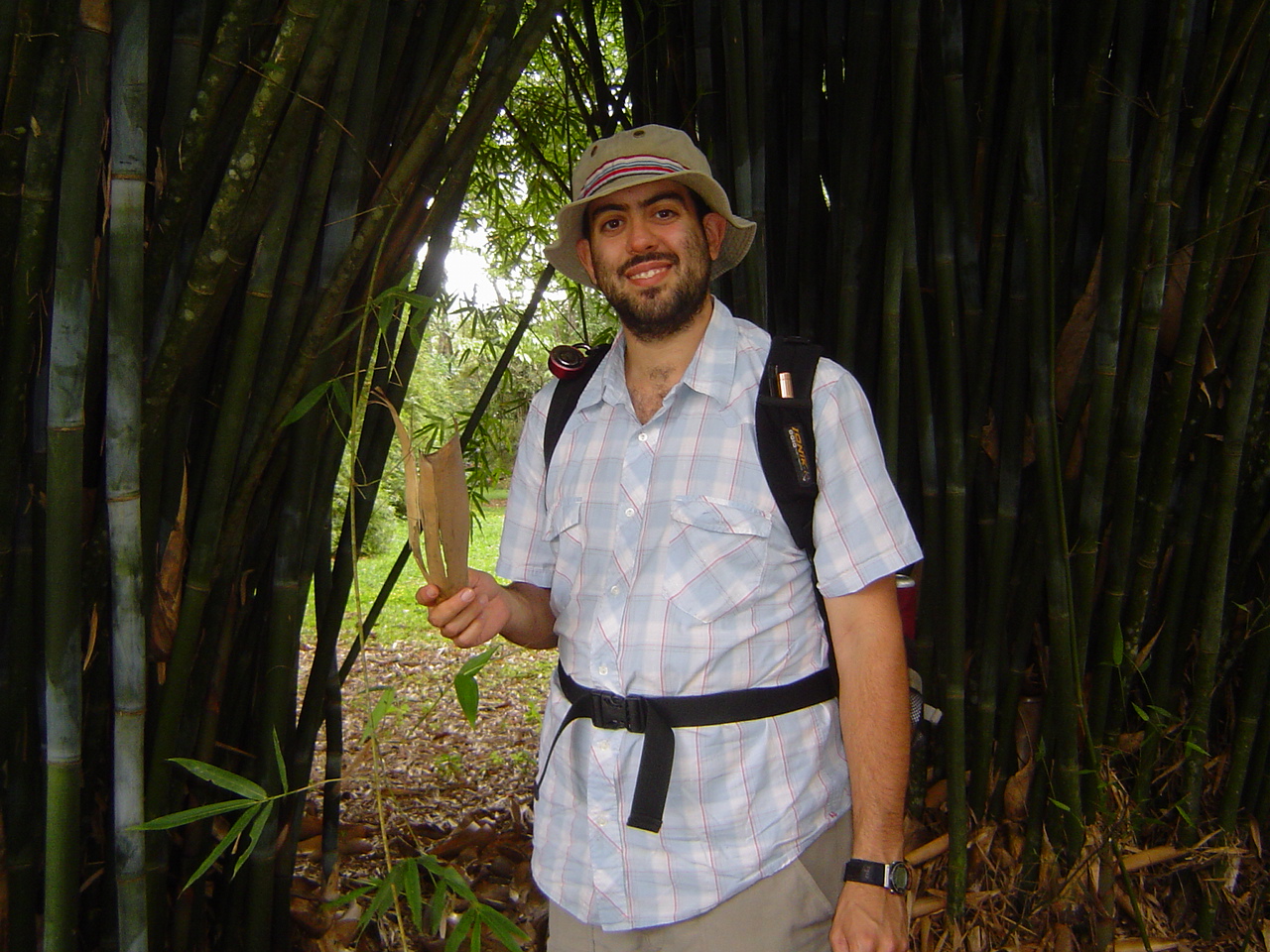 | This is from the Lankaster Gardens, where we ended the tour that day. Though I have countless pictures of orchids* (okay, 10), I'll just stick to this one of me in a thicket of bamboo. BTW, did you know that if you touch bamboo when it's this dark green color it will make you itch? But it's safe to touch once it turns brown (like the bark I'm holding).