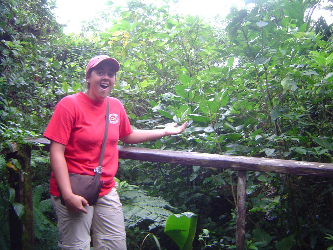 | The cloud forest was phenomenal. Walking through a rainforest on a mountain was just as I hoped it would be. Amidst the green were speckles of every color imaginable -- and all so bright! The clouds drifted through at one point and the breezes and altitude kept us cool as we walked (though made us cold when we stopped for lunch). |