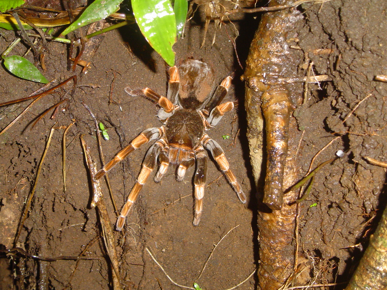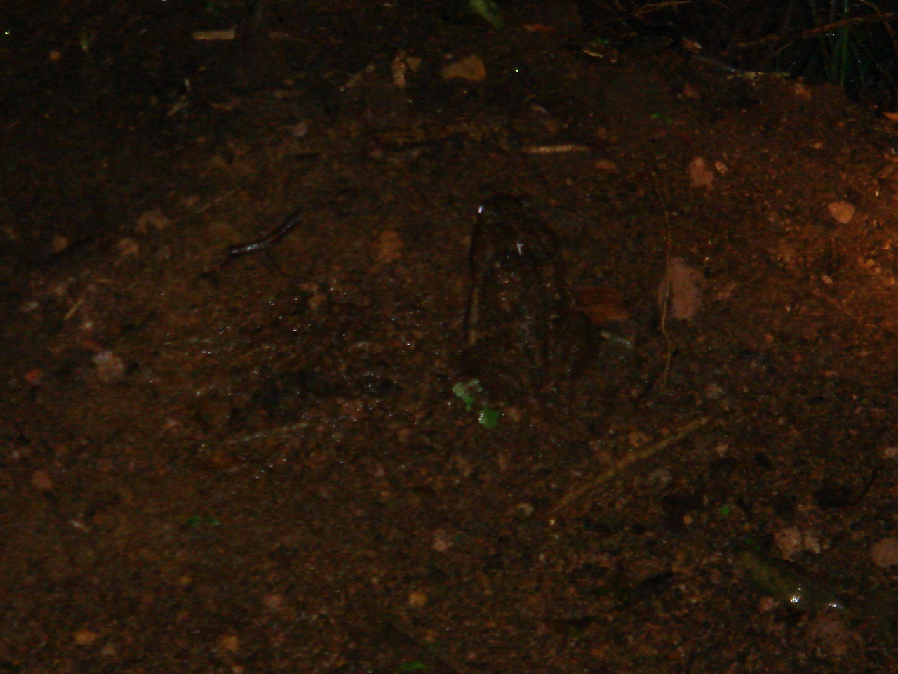 | The night tour was a lot of fun...we saw several tarantulas, an owl, two brown jays, an enormous ant colony, some walking sticks, a few caterpillars, and some interesting plants (including "forest toilet paper" -- very soft!). We saw no sloths, though not for lack of trying. So, the sloth and the quetzal have done unseen by me. :-( We walked around in the rain, C with the poncho and me with the seldom used umbrella. It stopped raining by the end, but I was already soaked -- and I loved it. | |