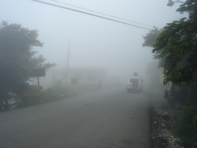 A cloud has rolled in over the town. It's so neat to watch it drift in through a window or doorway. It's like a very heavy fog, and if I didn't know better, I'd think it was. Note, we were in a cloud forest. |