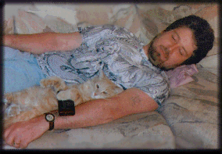 My husband with Tigger....notice the cat holding the remote ...*laughs*....this is one of my favorite pics :)
