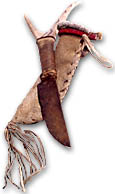 My medicine pouch is adorned with fetishes and contains items that bring me power and protection. One of the fetishes on the outside of the bag was by Jonathan Bear the curator of the Mesquakie Museum here in Iowa. It is the image of the south, east, west, and north, sewn on using glass beads, which represents the never ending circle of life. My medicine pouch is a very personal item and its contents are very rarely displayed.
