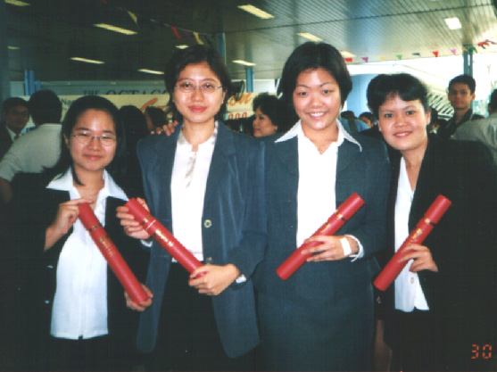 Graduation lunch @ NYDC...Clockwise: Martin, Melvin, Adelene, myself, Sharon, and Yewling. (30 Jun 2000) Hah...I'm actually looking solemn here...with Melissa, Marie, & darling Ade. (30 Jun 2000) Ahem, a "glamorous night out" with Mr Paul Bisnette. *wink wink* (Mass Comm Dinner, May 2000)