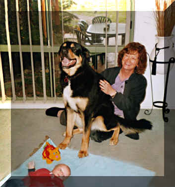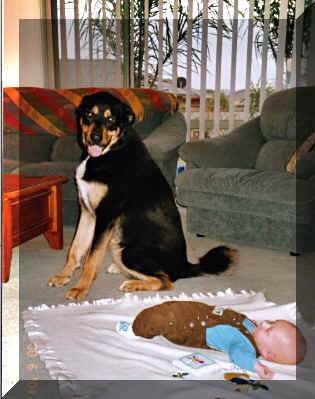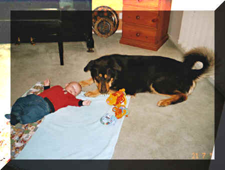 Titan's taking good care of me...... but I think he wants my toys!!!