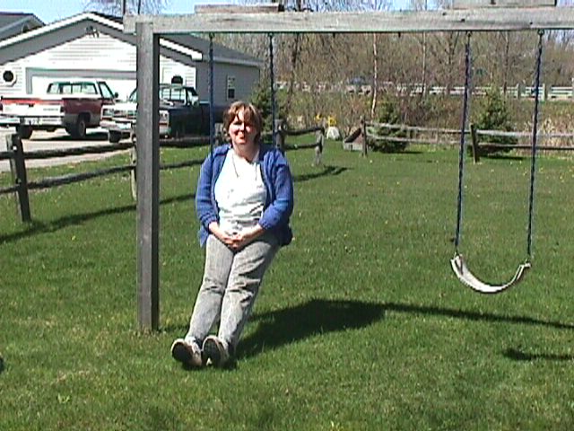 This is me. Cute, huh? This is in our front yard. I am 37 years old and I work at ITT Automotive here in town. We make parts for Ford and GM. Before that I was an EMT for 6 years. I am a mother of two teens, whom you will meet later, and my husband and I have been married for 18 years.