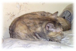 Description: Bebe was a plump Tortoise shell, usually asleep or eating. She died of old age at home this spring.